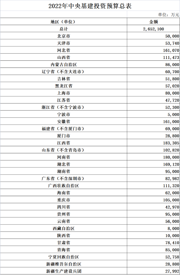 各省中央基建投資預(yù)算如下(各省詳細(xì)項目見后文):