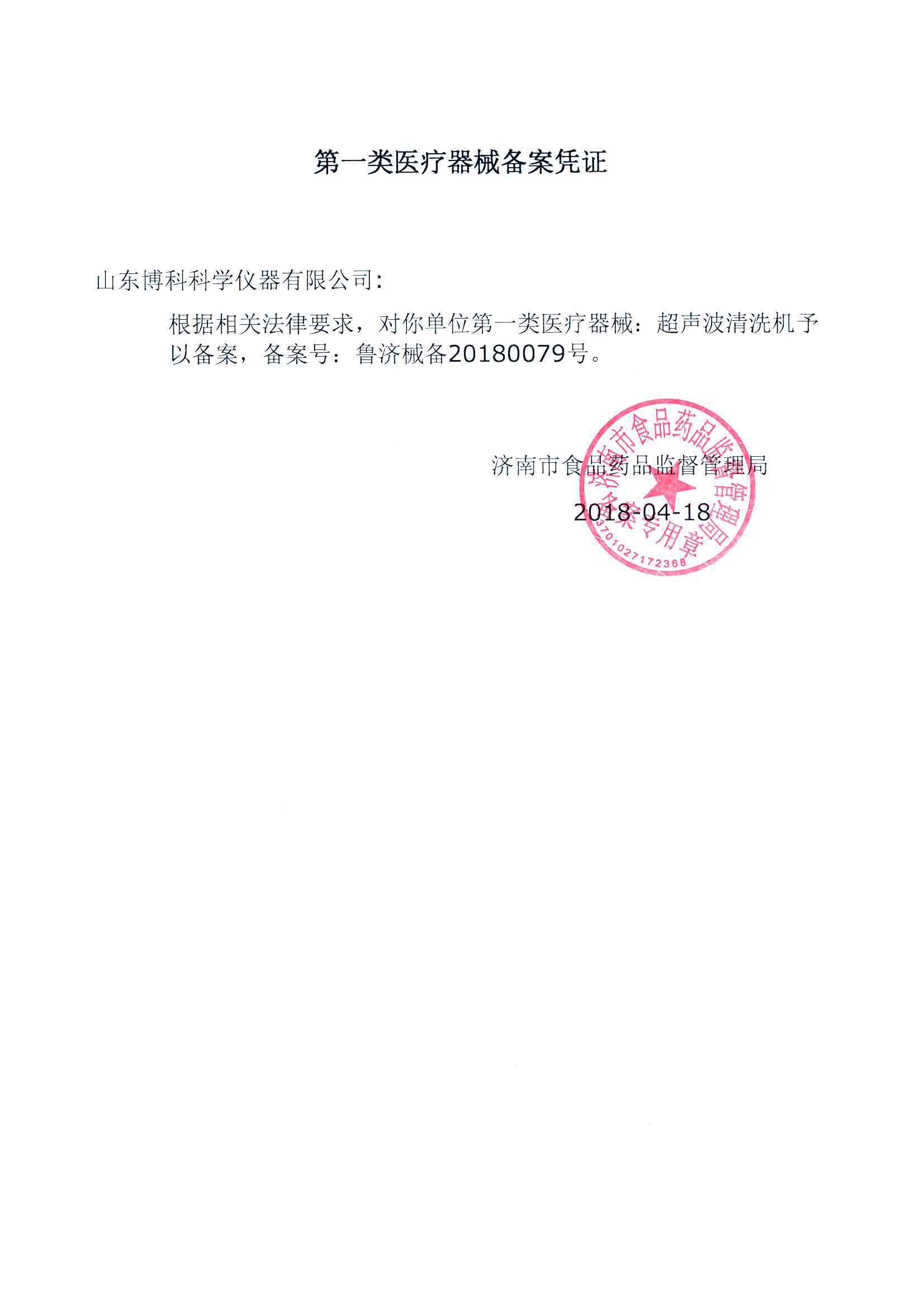 熱烈祝賀博科科學儀器公司取得超聲波清洗機產(chǎn)品的備案憑證和信息表