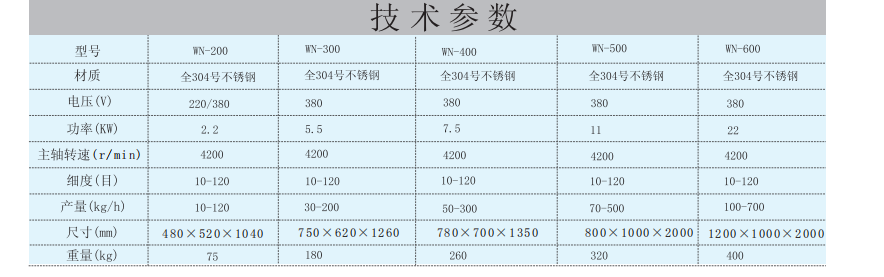 WN-200全能粉碎機產量10-120kg/h,不銹鋼制作,本機結構簡潔,堅固,運轉平穩,粉碎物料快速,均勻,效果良好。